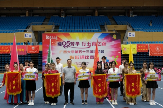 啦啦操队凭借着精彩表现以及独特巧思赢得了满堂喝彩,也获得了评委老师的肯定,最终捧回了一等奖的锦旗!