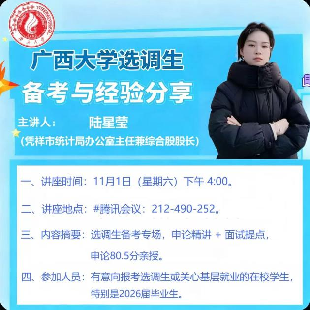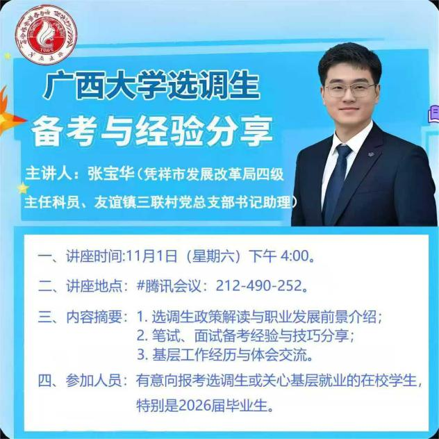 于11月1日成功举办了线上选调生备考指导分享会,为学子们点亮了基层梦想的前行之路。